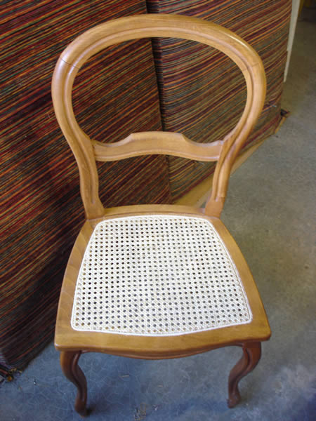 - Le cannage collé : Il est souvent utilisé pour des dossiers ou joues de sièges : les trous ne sont pas traversant. Il faut donc couper les brins et les coller. Il est moins solide mais permet une finition invisible.