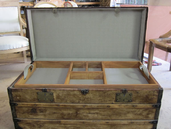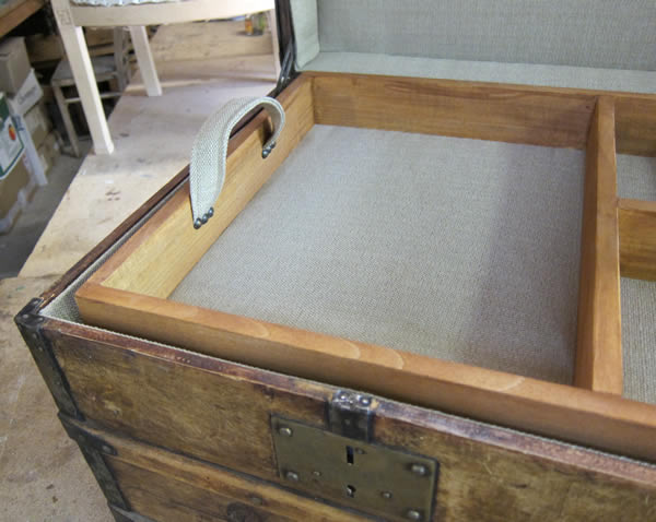 Les techniques » Gainerie tissu » s’appliquent dans les cas suivants : habillage intérieur de coffrets, coffres, males, meubles, armoires. Cela se rapproche de la tenture murale dans une pièce, les dimensions étant différentes. L’application de tissu dans un espace réduit, voir miniature demande des attentions spécifiques : difficultés d’accès, fournitures à confectionner en « mini ».