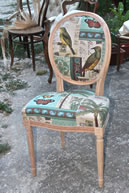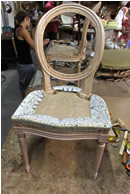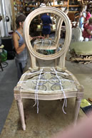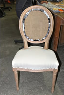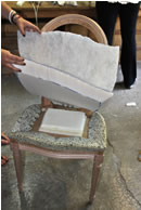 Une toile blanche est posée sur l’assise et le dossier pour donner la forme définitive du siège et recevoir le tissu décoratif.