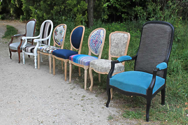 (coût fournitures supplémentaires : chaise 70€, petit fauteuil 90€, fauteuil volumineux « style voltaire » 110€)